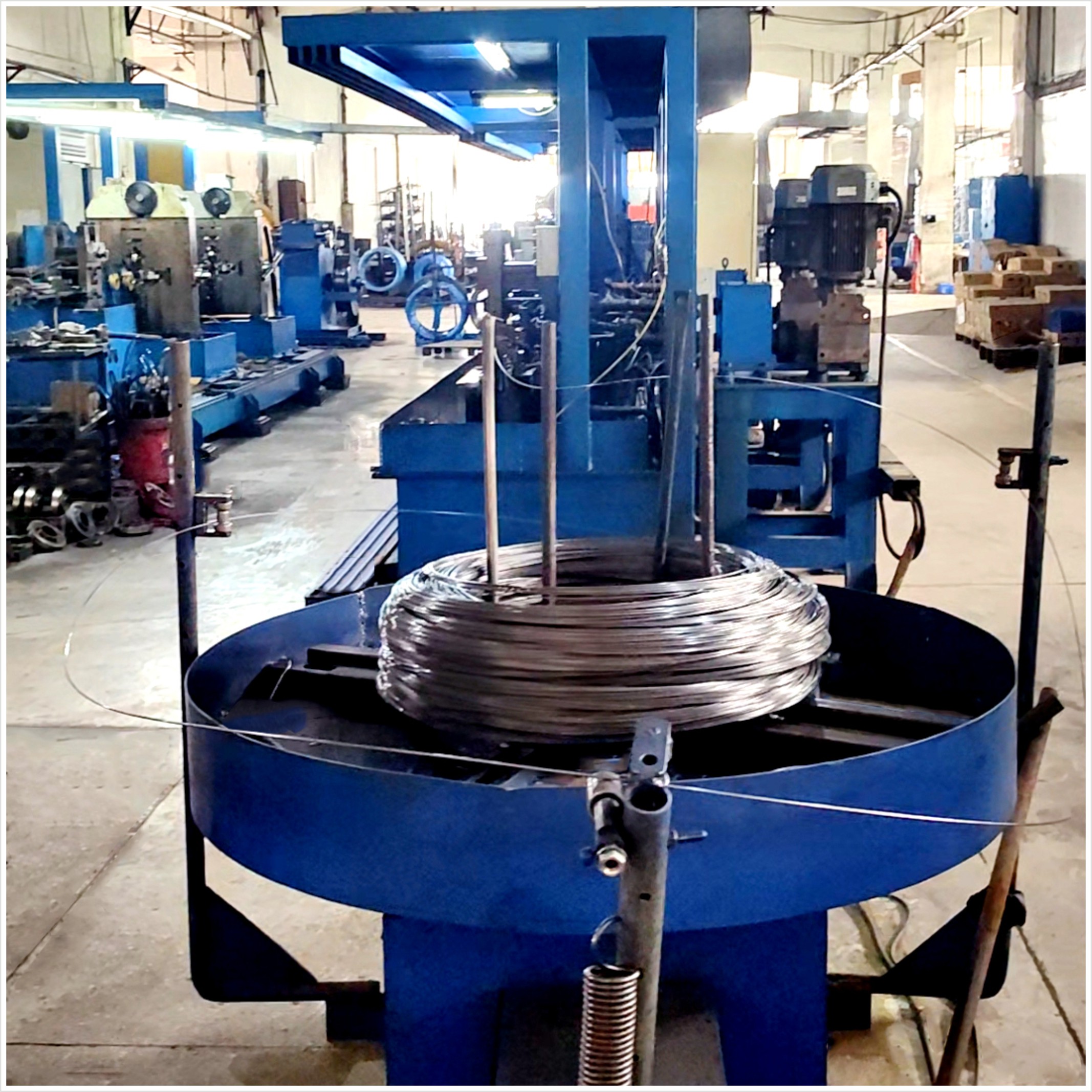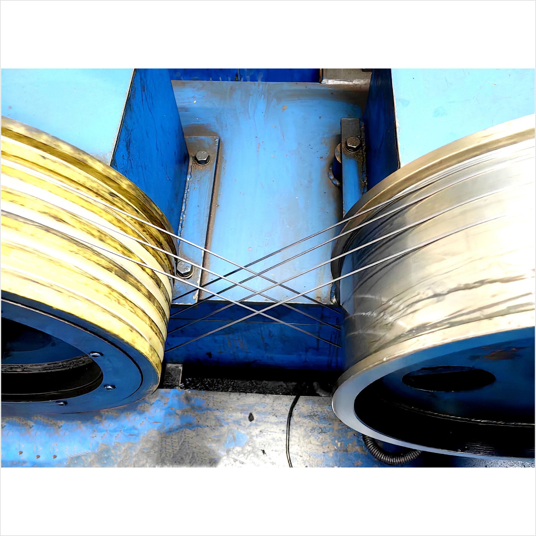 ,指定线径钢线在外力作用下通过模具配合挤压变形拉伸,最终轧制出要求的圆形或方形钢丝线。